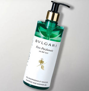 Discover the pinnacle of self-care with Bvlgari Hotel's collection of Green Tea toiletries. This exquisite lineup includes shampoo, conditioner, shower gel, body lotion, hand wash, and hand lotion, (each sold separately) all enriched with the tranquil essence of green tea and high-quality natural ingredients. Immerse yourself in the delicate, refreshing scent while nourishing your skin with hydration and soothing properties. The refined packaging and gentle formulas provide a spa-like experience, elevating your everyday ritual with a touch of refinement and rejuvenation.